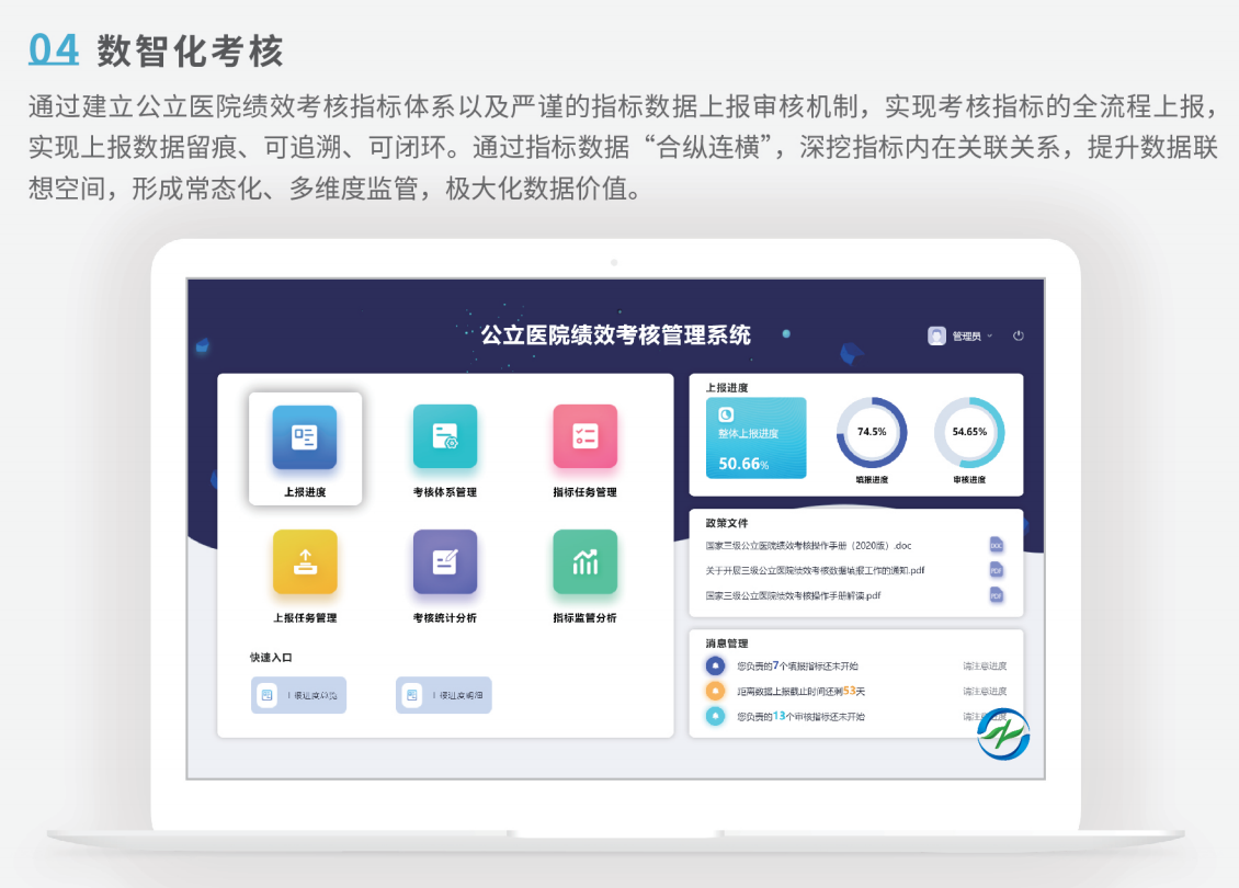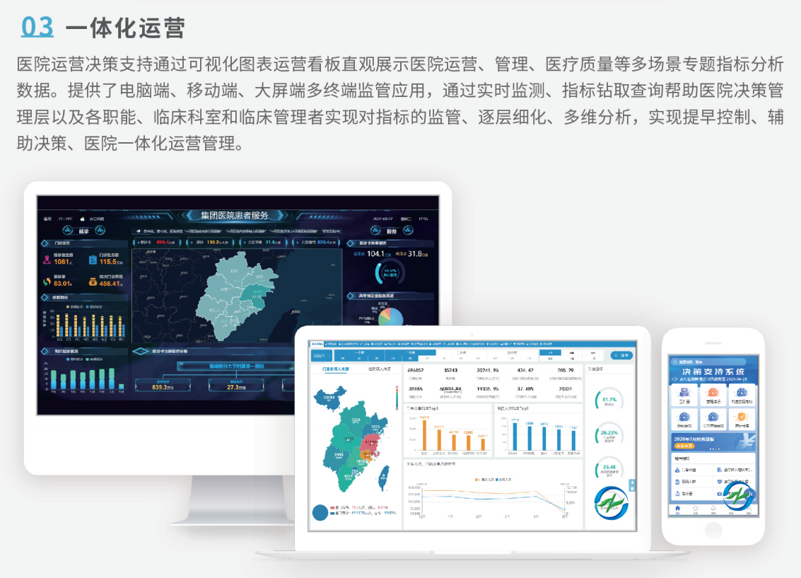 基于《醫(yī)院智慧管理分級(jí)評(píng)估標(biāo)準(zhǔn)體系》,通過對(duì)醫(yī)院業(yè)務(wù)系統(tǒng)產(chǎn)生的數(shù)據(jù)進(jìn)行采集、清洗、溯源、排序、統(tǒng)計(jì)、挖掘、反饋,完成數(shù)據(jù)資源整合共享,實(shí)現(xiàn)醫(yī)院全面精細(xì)化管理,真正讓醫(yī)院在管理的道路上心中有“數(shù)”,決策有“據(jù)”,執(zhí)行有“效”,發(fā)展有“力”。